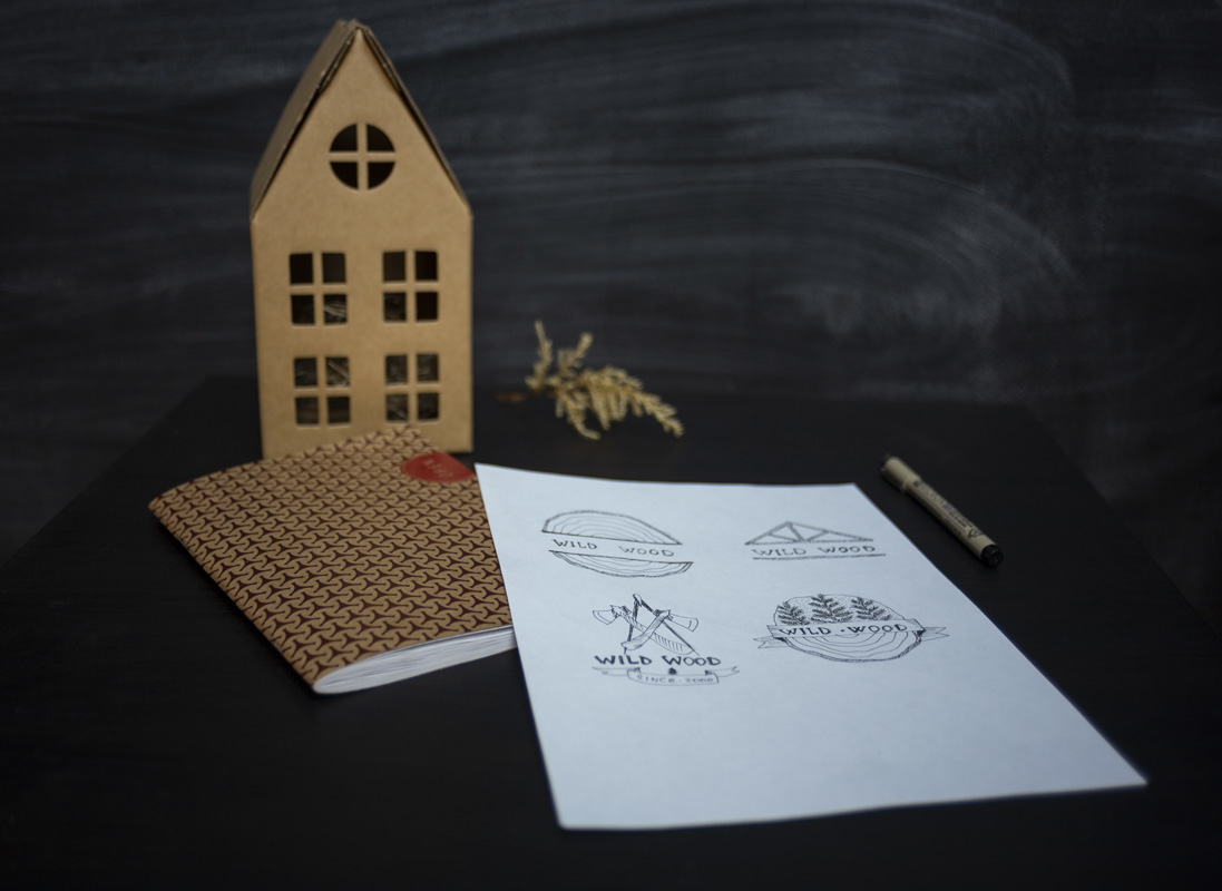 Заказчик предложил сделать что-то олдскульное, хипстерское, про натуральность, лес и уединение. Особенно запала в душу идея с логотипом в виде деревянной фермы для крыши.