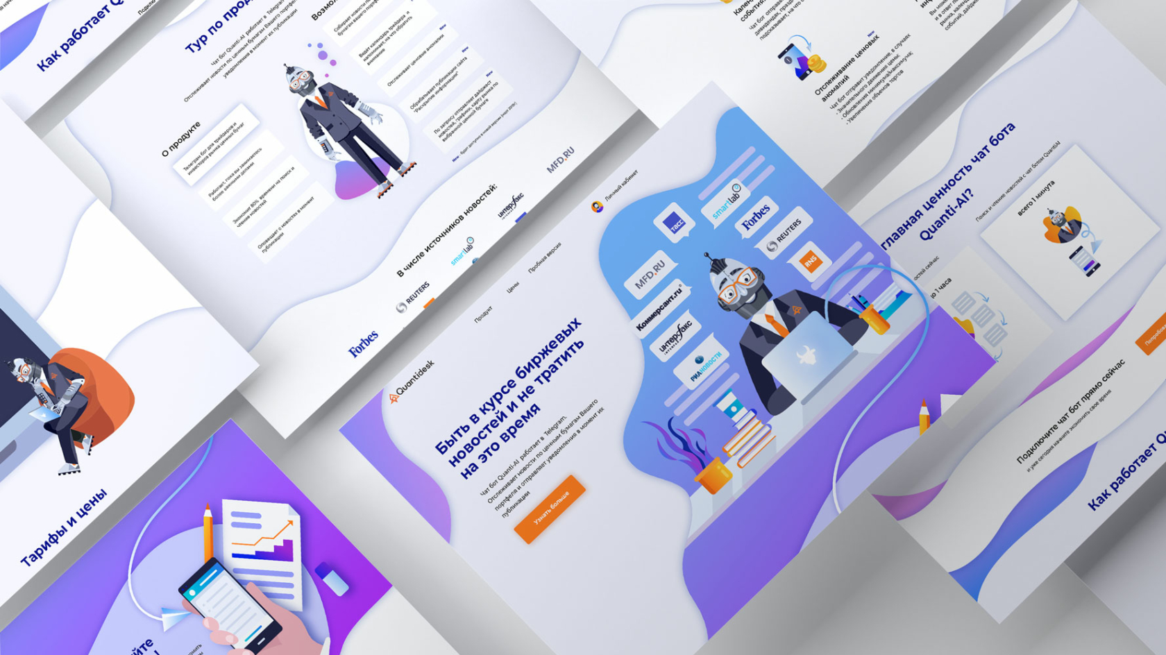 Ребята уже почти закончили разработку бота, поэтому пришло время заявить о себе. Мы спроектировали и нарисовали лендинг, который говорит о пользе бота и дает бесплатный доступ к нему. Помимо лендинга, мы сделали небольшой гайд для верстальщиков по элементам внутреннего интерфейса продукта. Программную часть делала команда заказчика.