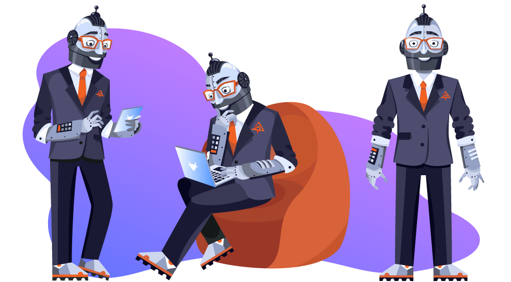 Продукт компании - телеграм-бот. Он помогает трейдерам экономить время на сбор актуальной информации: отслеживает новости по ценным бумагам вашего портфеля и отправляет уведомления в момент их публикации. И не только. В общем, это очень полезный продукт для тех, что работает на рынке ценных бумаг - эдакий виртуальный помощник, который всегда с вами. Наш персонаж - это робот. Но не простой. Он деловой и серьезный, но не чересчур статусный (ибо помощник). Добрый, умный, дружелюбный. Взрослый и авторитетный, но не унылый - он носит кеды с костюмом, а на голове у него модная стальная прическа.